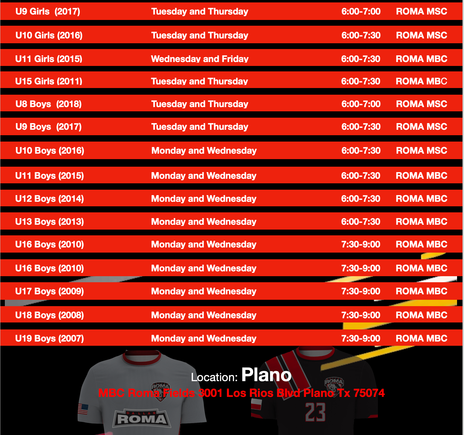 Dallas Roma FC started holding open practices for the Alpha and Beta teams throughout the whole Soccer club. We will be available to answer any question after our sessions. Please come on out and practice with top coaches in Dallas. Each coach will give an evaluation and guidance for your soccer player.